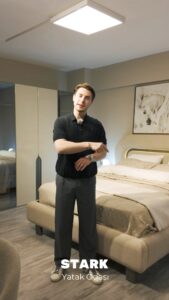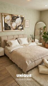 Yatak odasına modern ve düzenli bir görünüm katar.