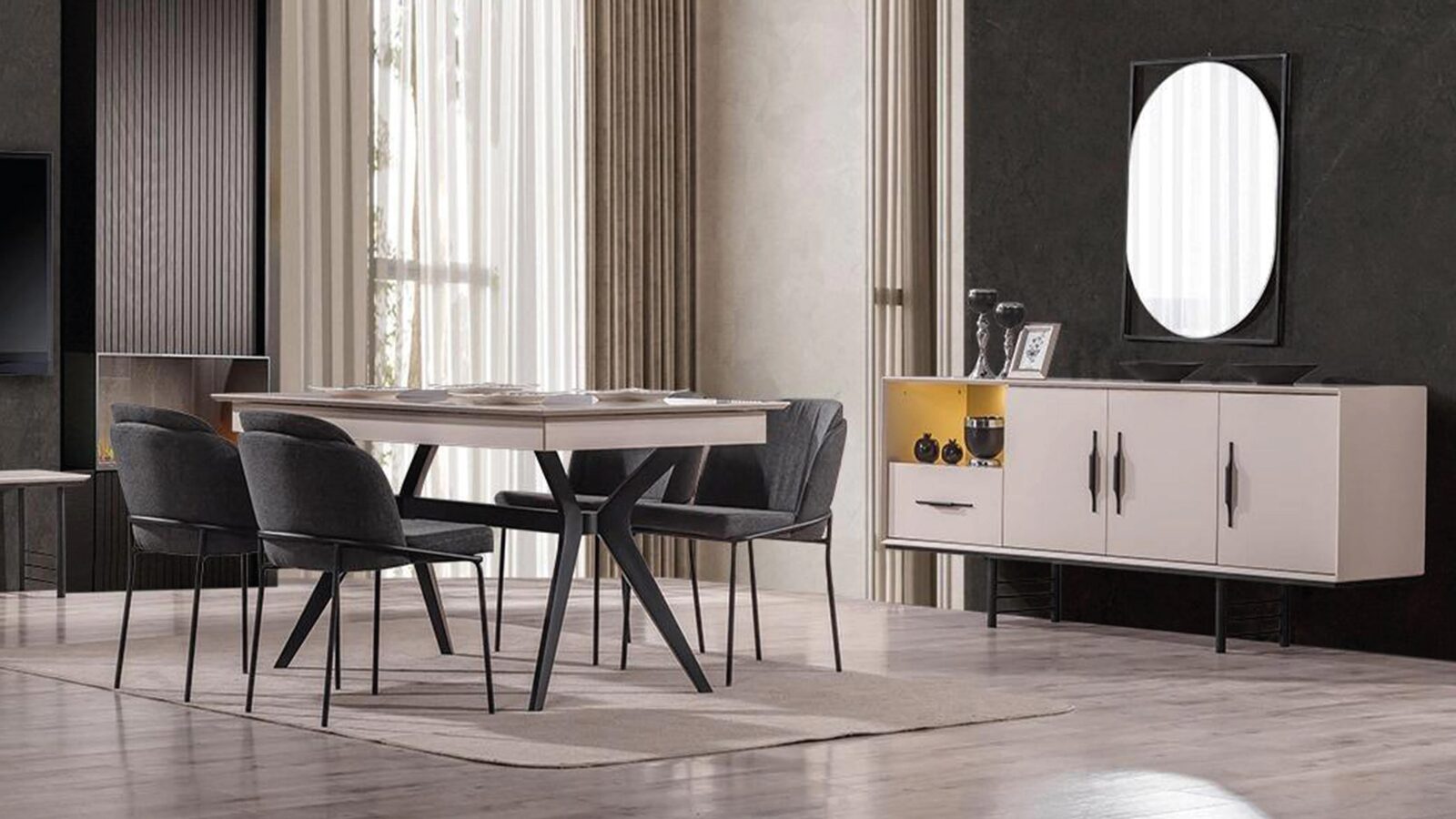 Bu paket, evlerinize kattığı estetik dolayısıyla iç mekanınıza farklı bir hava katacaktır. Modern tasarımı sayesinde hareketli ve davetkar bir atmosfer oluşturur. Eşya yerleşimini kolaylaştırarak, şıklığı ve işlevselliği bir arada sunar. Herkesin beğenisini kazanacak bu parçalara şimdiden sahip olabilirsiniz.