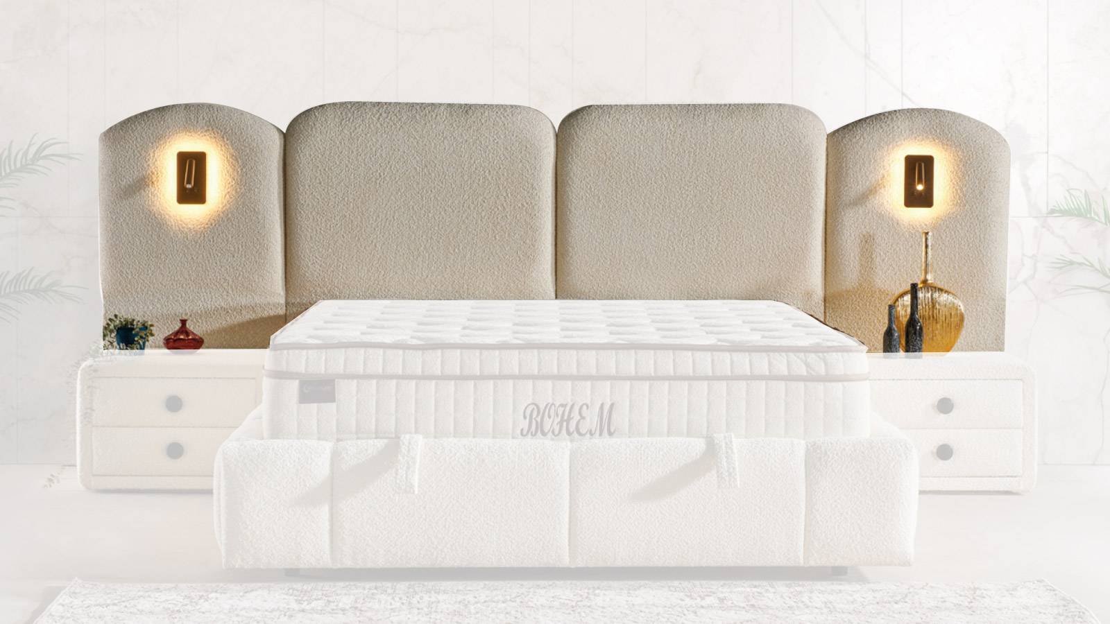 Bu başlık, modern yatak odaları için ideal bir tercihtir. Gösterişli görünümü, herhangi bir yatak grubuyla mükemmel bir birliktelik sağlar. Kullanışlı yapısı sayesinde, hem görselliği artırır hem de yatağınızın işlevselliğini destekler.